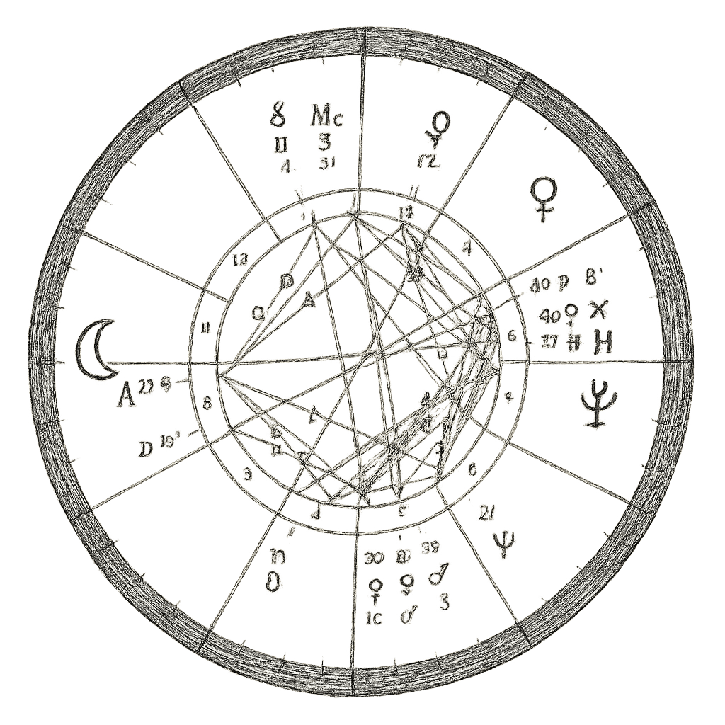Dopo averci mostrato dei video di una sua esibizione, la ragazza parlò di un altro suo interesse personale che riguardava una disciplina, anzi, un “qualcosa” che al mio io di allora suscitava una certa curiosità quanto un’istintiva diffidenza. La ragazza praticava l’astrologia e aveva una certa esperienza nella lettura del tema natale. Il tema… natale? Sì, il tema natale. La carta del cielo al momento della nascita, il risultato delle geometrie astrali in quel giorno, in quel luogo a quell’ora che, come scoprii in quel momento, corrispondeva all’astruso disegno comparso sul display del telefono della ragazza. Il significato del mio destino era – cosa che mi inquietò non poco – racchiuso in uno scarabocchio di simboli indecifrabili.
